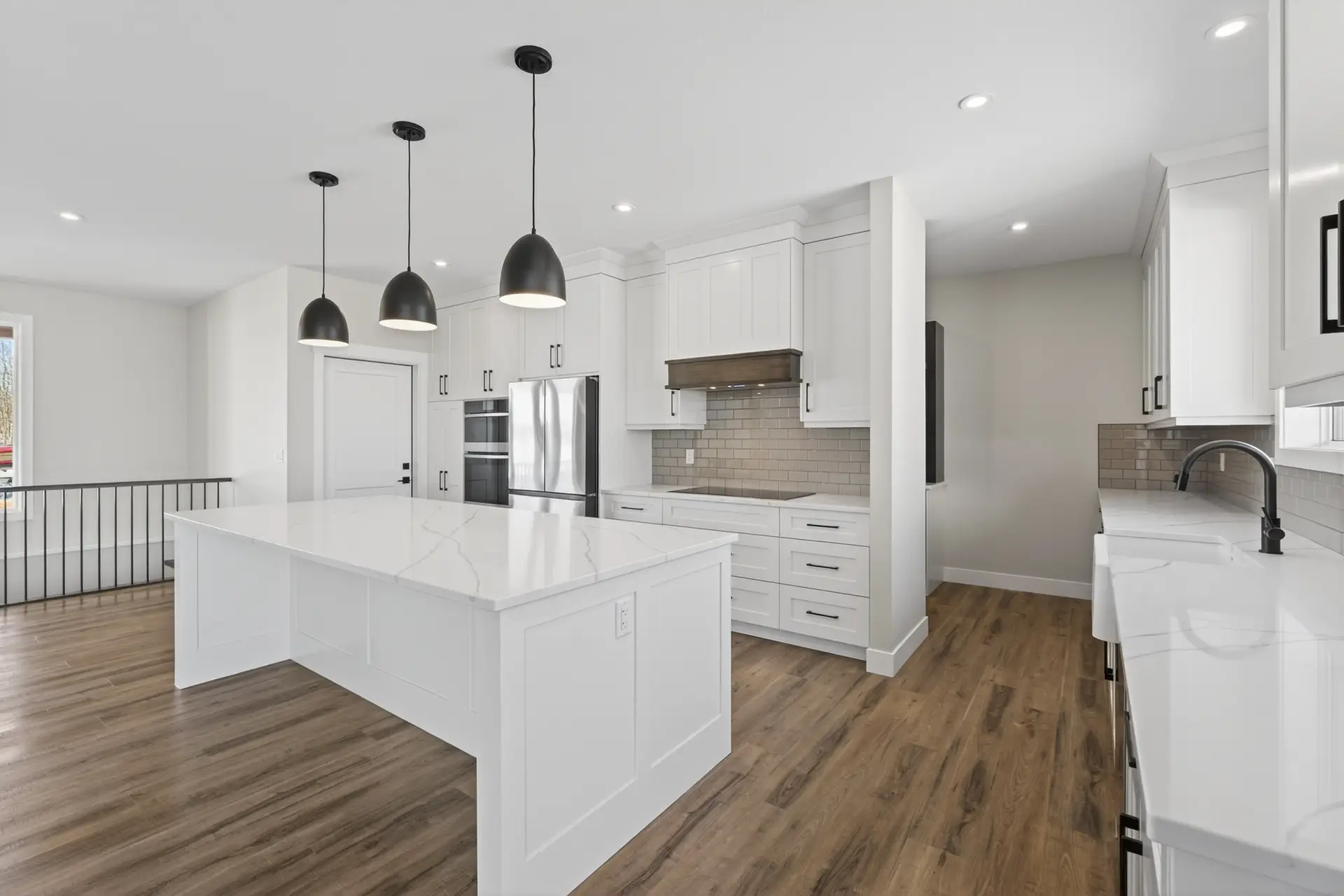 Set against a serene, wide-open landscape, this stunning custom home by High Country Builders blends modern farmhouse charm with refined craftsmanship. The striking exterior features crisp white siding, bold black accents, and warm timber details that create unforgettable curb appeal, while the elevated rear deck offers the perfect vantage point to take in peaceful surroundings year-round. Inside, a bright and airy open-concept design welcomes you with a showstopping kitchen complete with sleek cabinetry, a generous island, and stylish pendant lighting—ideal for both everyday living and entertaining. Every detail of this home has been thoughtfully curated to deliver comfort, beauty, and lasting quality, making it a true standout for those seeking elevated country living.