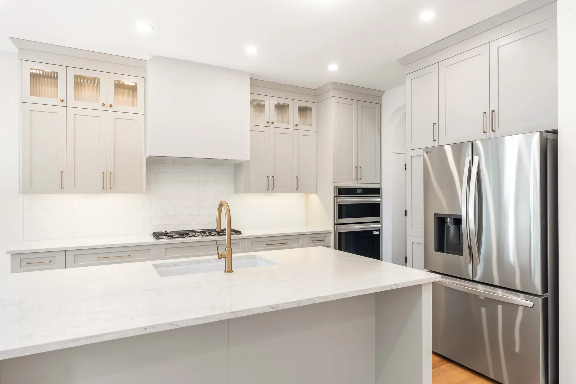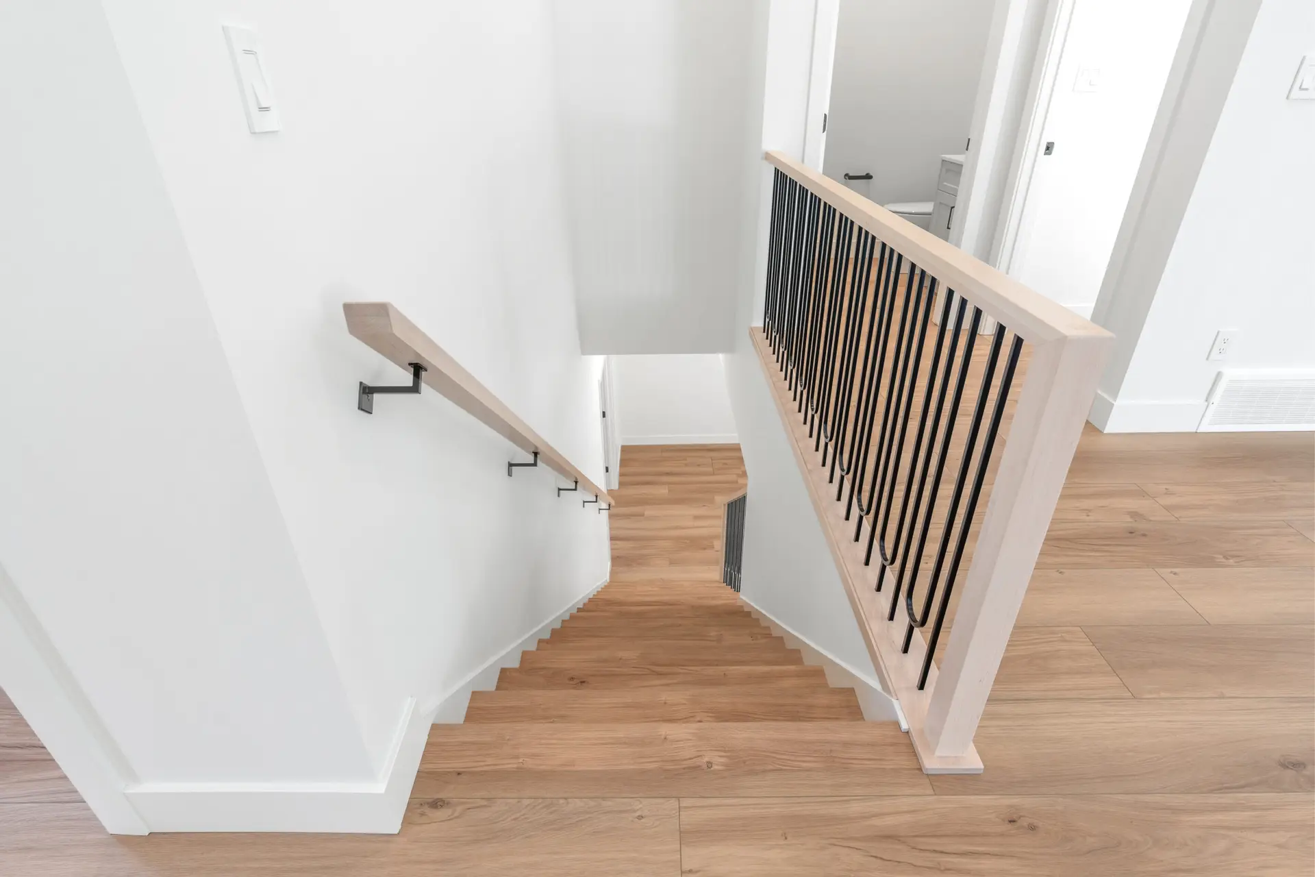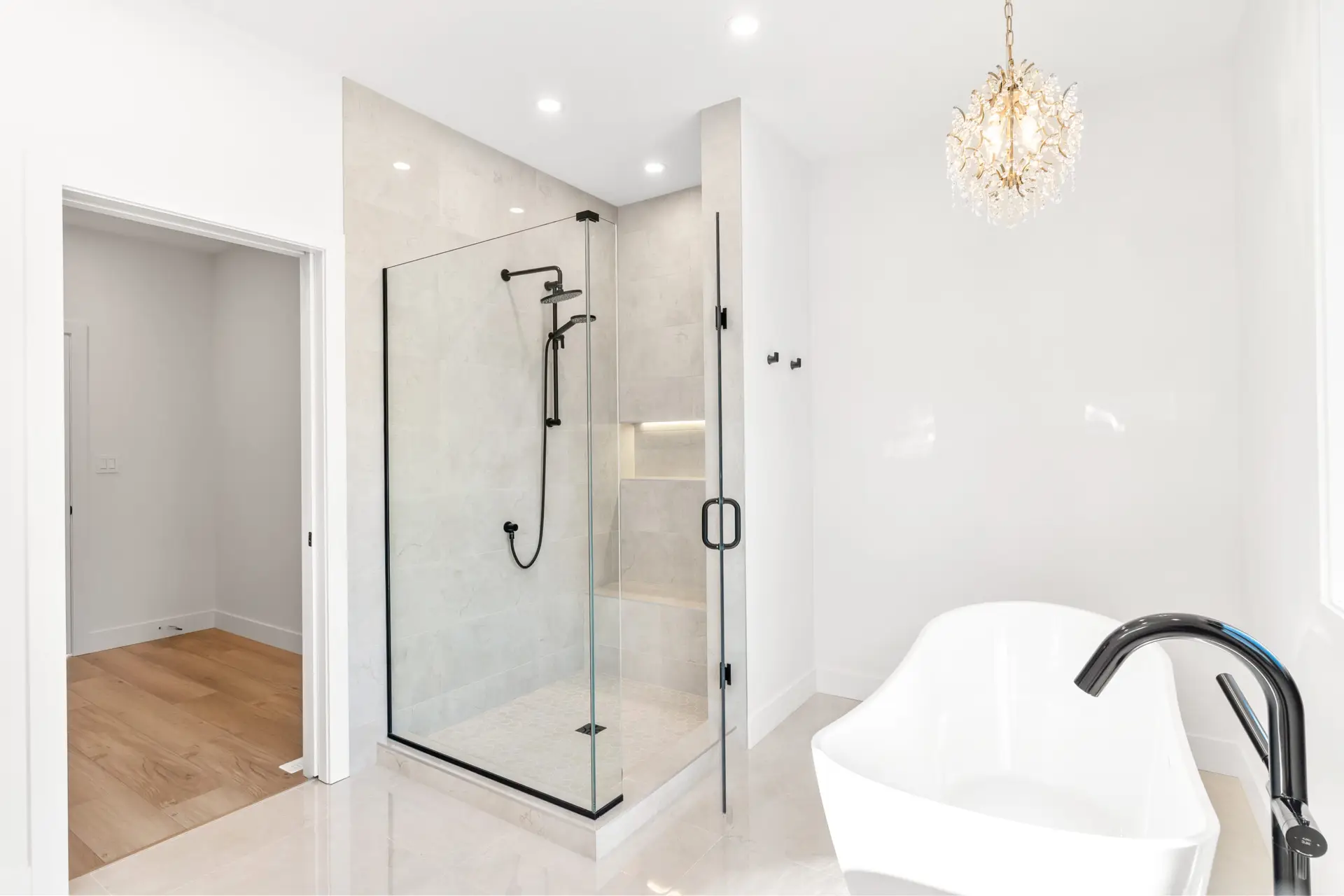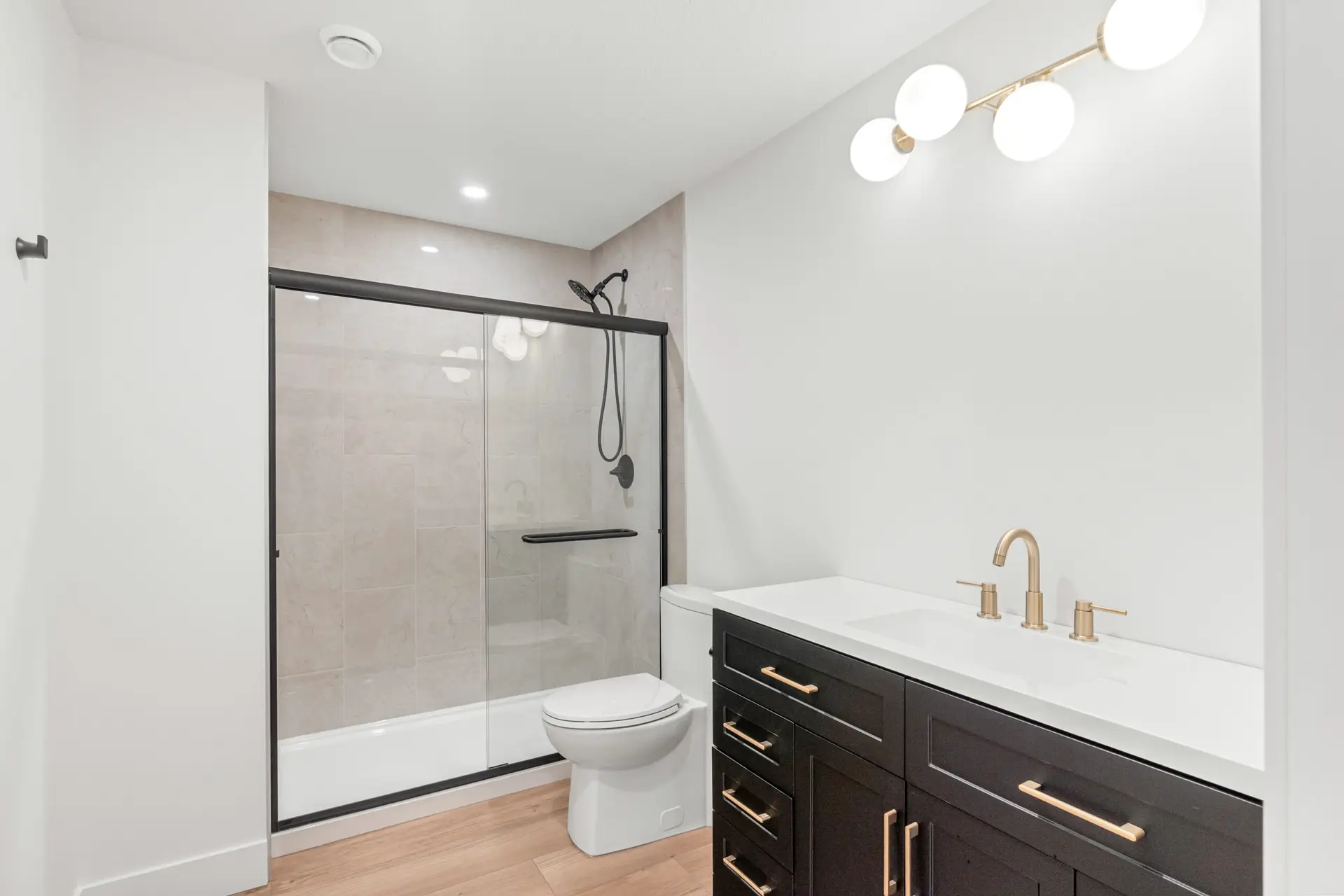 This beautifully crafted modern home blends clean design with warm, natural touches, offering both style and comfort in a peaceful wooded setting. The bright, open-concept living space features soaring ceilings, wide-plank hardwood floors, and oversized windows that fill the home with natural light. A sleek gas fireplace anchors the living area, while the designer kitchen impresses with custom cabinetry, quartz countertops, premium appliances, and a spacious island perfect for gathering. Outside, the crisp white exterior with black accents and an attached garage creates striking curb appeal, all surrounded by mature trees that provide privacy and tranquility. Thoughtfully designed and move-in ready, this home offers modern living at its finest.
